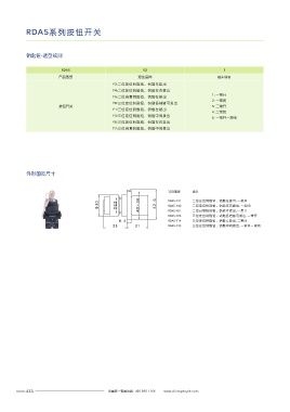 Φ30 D22 40×30 42.6 RDA5-Y21 2 1 二位定位钥匙钮,钥匙左拨出,一常开 56.4 D22 40×30 42.6 RDA5-B5 双键自复钮,一常开一常闭